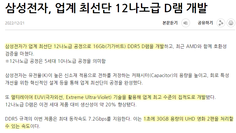 | HBM이란, 고대역폭 메모리 반도체, 작동원리, 필요성, 장점, 인사이트 (1) | 2023.09.12 |